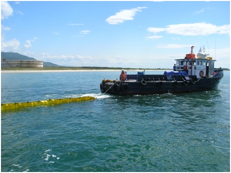 -Δημιουργία πλωτού φράγματος σε έκταση 250 μέτρων για το περιορισμό της θαλάσσιας ρύπανσης και αναρρόφηση των πετρελαιομένων νερών από το σύστημα περισυλλογής πετρελαιοειδών (OilSkimmer).