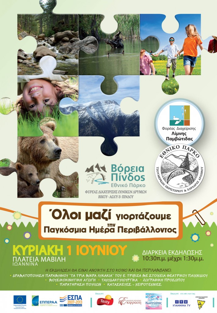 Με αφορμή τον εορτασμό της Παγκόσμιας Ημέρας Περιβάλλοντος, οι Φορείς Διαχείρισης Λίμνης Παμβώτιδας, Εθνικών Δρυμών Βίκου – Αώου και Πίνδου και Εθνικού Πάρκου Τζουμέρκων, Περιστερίου και Χαράδρας Αράχθου, συνδιοργανώνουν κοινή ανοιχτή εκδήλωση με στόχο την περιβαλλοντική ευαισθητοποίηση.
