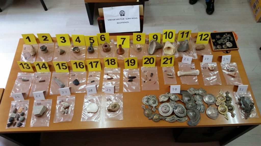 Ειδικότερα, συνελήφθησαν, ύστερα από οργανωμένη αστυνομική έρευνα της Υποδιεύθυνσης Ασφάλειας Ιωαννίνων, χθες το μεσημέρι στα Ιωάννινα, ένας 37χρονος ημεδαπός και μία 47χρονη υπήκοος Ουκρανίας, σε βάρος των οποίων σχηματίστηκε δικογραφία κακουργηματικού χαρακτήρα για παραβάσεις της Νομοθεσίας περί προστασίας Αρχαιοτήτων και εν γένει της πολιτιστικής κληρονομιάς, της Νομοθεσίας περί όπλων και ναρκωτικών καθώς και διακεκριμένες κλοπές.