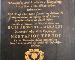 · Το «βιβλίον καλούμενον ΠΙΣΤΗΣ» του Μοσχοπολίτη Νεκταρίου Τέρπου, στην επανέκδοση του 1779 που έγινε από τον Νικόλαο Γλυκή τον εξ Ιωαννίνων. Το βιβλίο εκδόθηκε αρχικά το 1732 στη Βενετία και επανεκδόθηκε πολλές φορές,