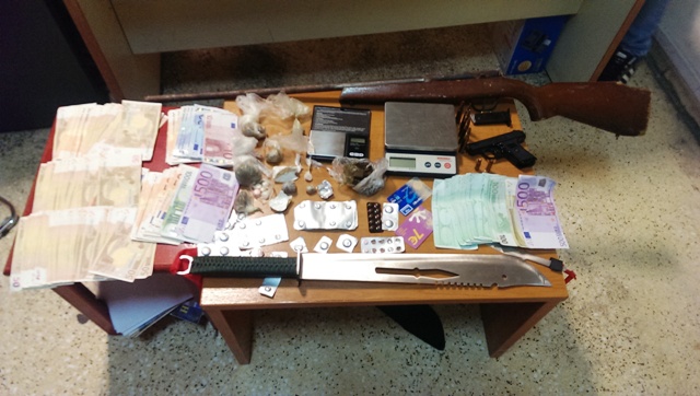 Στην κατοχή του και σε έρευνα που ακλούθησε στο σπίτι του, συνολικά βρέθηκαν και κατασχέθηκαν: